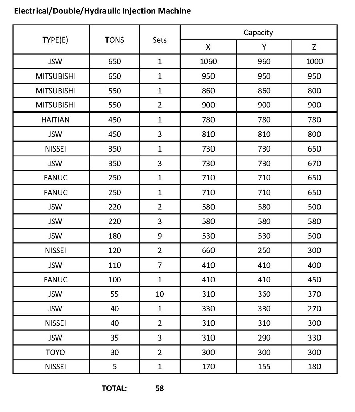 Below is the overall machinery and equipment list for HKPL: